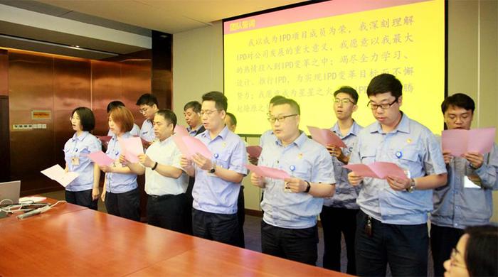 隨后,項目經理劉東星帶領IPD項目團隊和顧問團隊完成了莊嚴宣誓,將整個會議進程帶入高潮。
